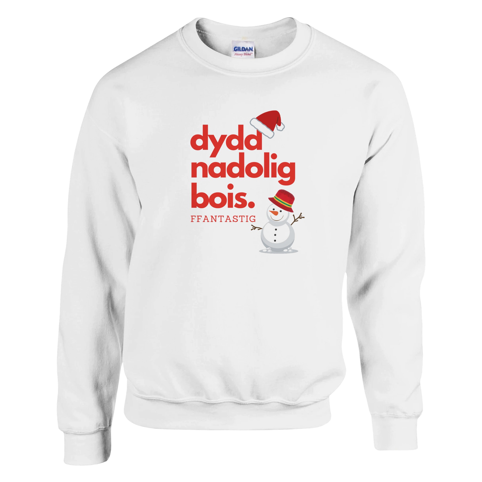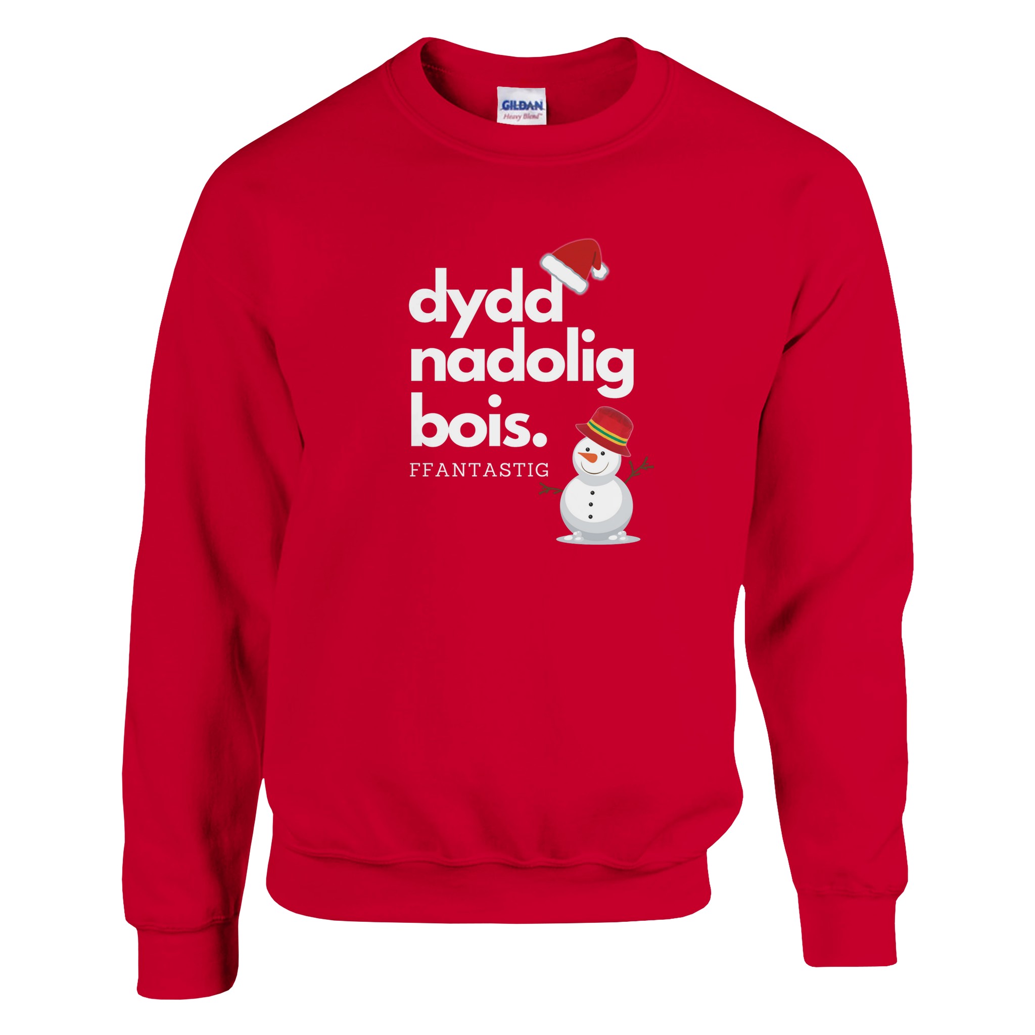 This Welsh Christmas Jumper is a must have for the holiday season. A play on our Dydd Gwener Bois design, we’ve added in a Santa hat and a snowman in a Welsh bucket hat to make it nice and festive! Dydd Nadolig Bois, Ffantastig!